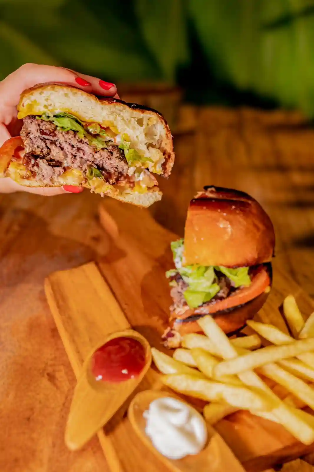 Steak, cheddar, bacon, tomates, salade,…